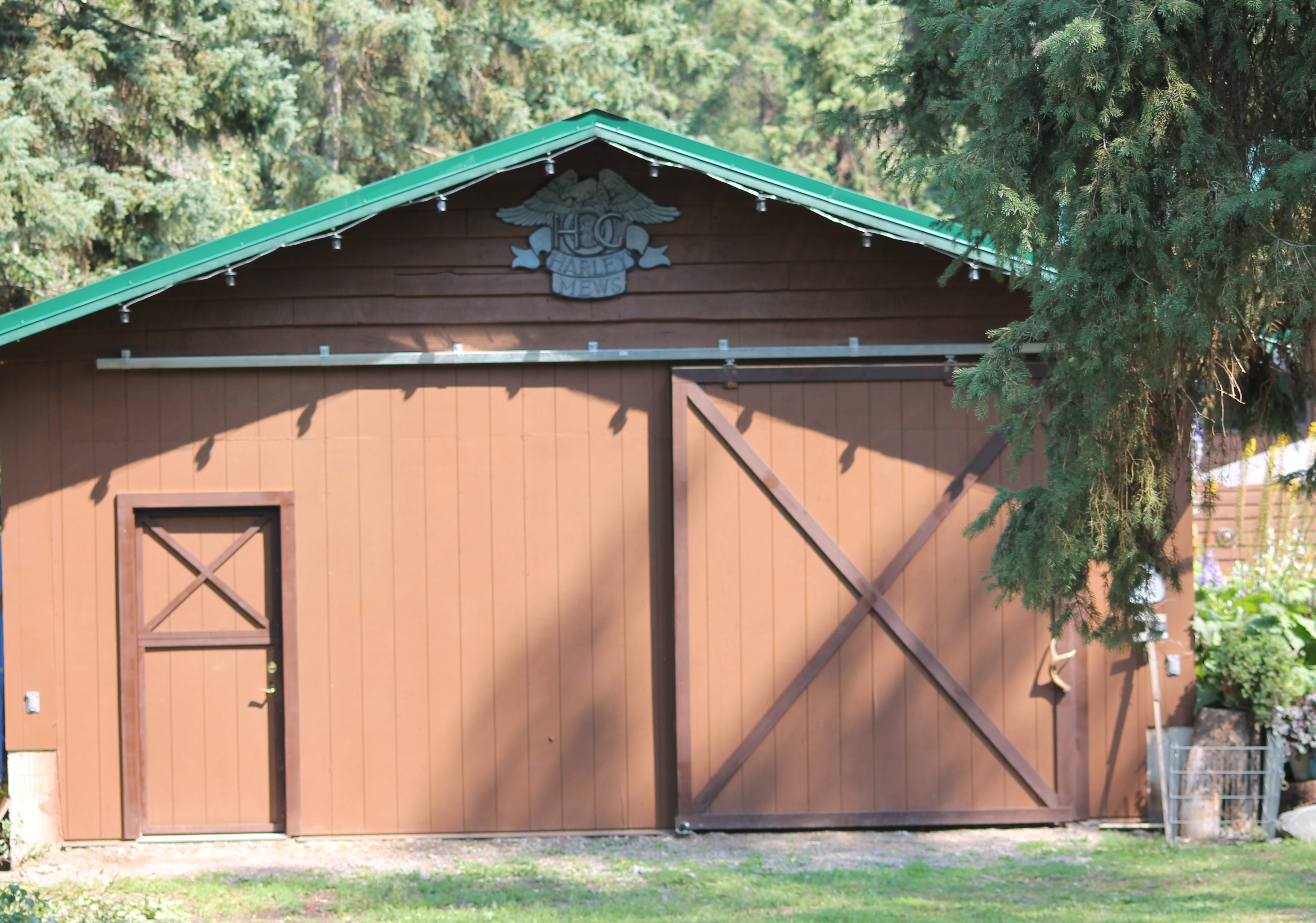 I have been admiring our new garage. What a handy man my husband is, right down to the hand-built sliding barn door with a deer antler handle!