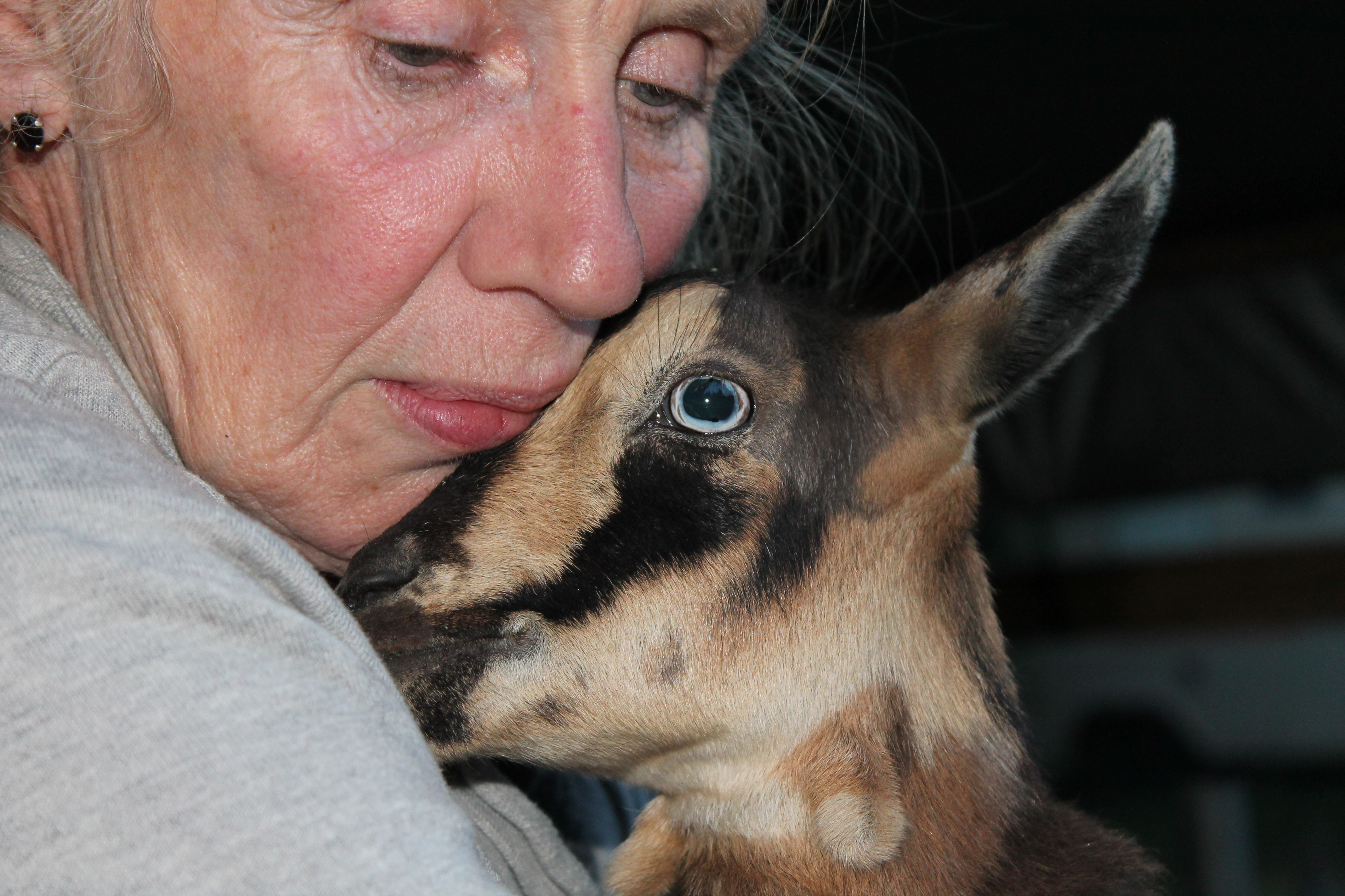 The Nigerian Dwarf goats Mocha and Latte have now grown big enough to run and forage in the big fields. Don’t you love their turquoise eyes?